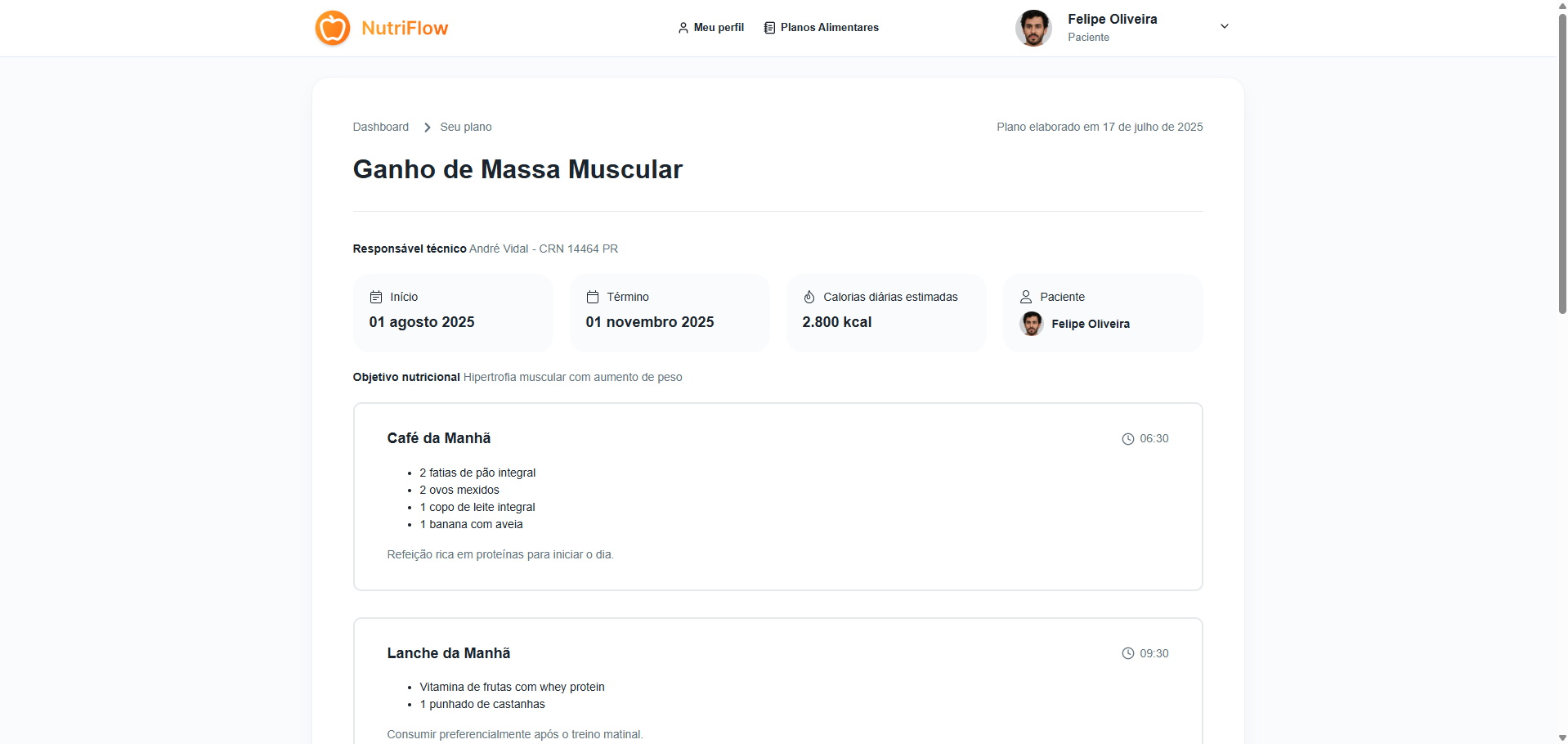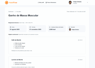 A digital platform that helps nutritionists create, organize, and manage meal plans in a practical and visual way, giving patients easy access, clear progress tracking, and continuous support.