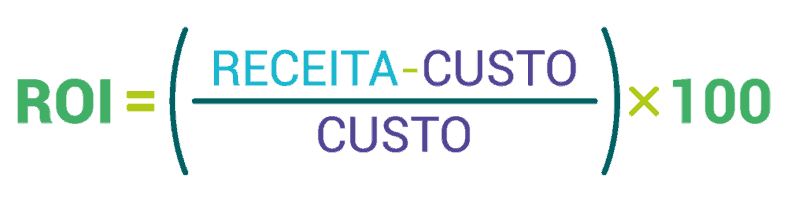 De uma forma simplificada, a mensuração do ROI é feita pela diferença entre o valor da receita, ou seja, o valor faturado, e o custo do investimento feito, dividido pelo custo do investimento. Assim, quanto maior for o resultado, melhor para os negócios. Veja a fórmula abaixo: