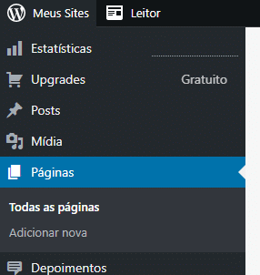 1. No painel de controle, selecione Páginas > Adicionar Nova