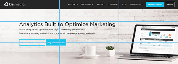 A localização dos botões de CTA também é importante em uma landing page de vendas. A Regra dos terços divide visualmente a página inicial em quatro interseções. O local mais indicado para posicionar o CTA é uma dessas interseções, pois elas evidenciam o maior interesse do público.