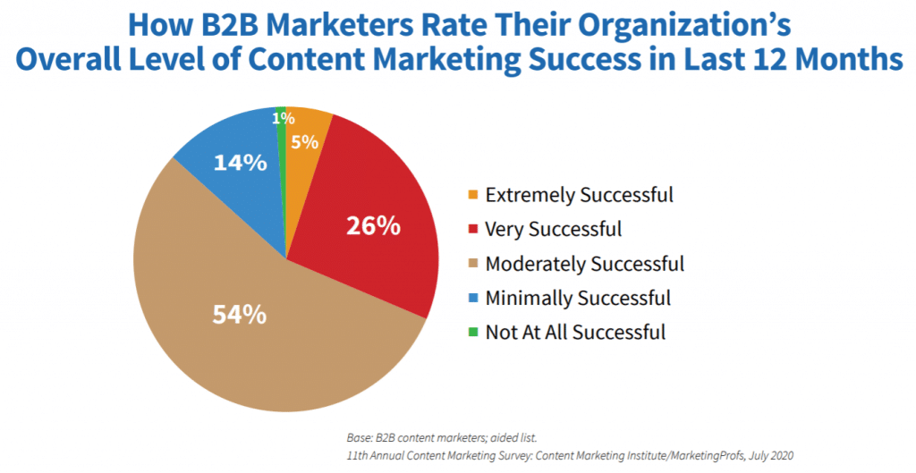 Muitas empresas estão investindo no marketing de conteúdo e tendo bons resultados. De acordo com uma pesquisa do Content Marketing Institute, 80% dos profissionais de marketing B2B dizem que a sua estratégia de conteúdo foi muito ou extremamente bem sucedida em 2020.