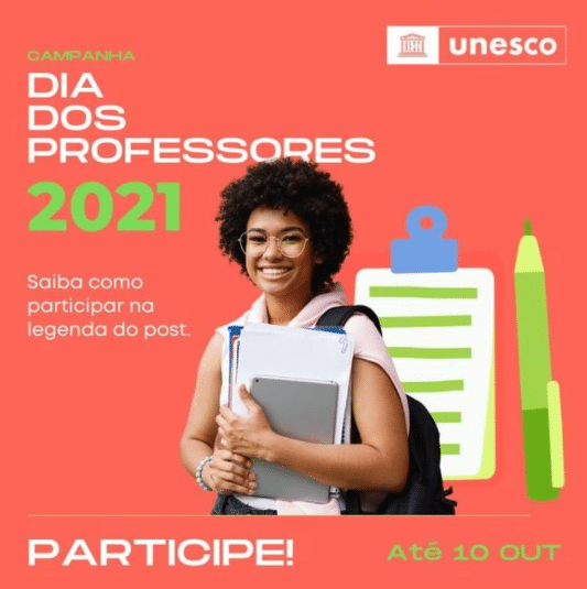 Os critérios para participação envolviam marcar o perfil da UNESCO no Instagram, além de postar fotos ou vídeos sobre o assunto com a hashtag #UnescoComProfessores2021.