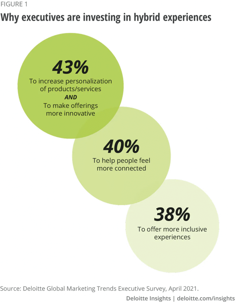 De acordo com levantamento da Deloitte, 75% dos executivos globais pretendem investir mais em experiências híbridas nos próximos anos, motivados pelas possibilidades de personalização, inovação, conexão com o cliente e inclusão. Tudo isso, porém, exige investimentos em infraestrutura que ainda são um desafio, principalmente para as pequenas empresas.