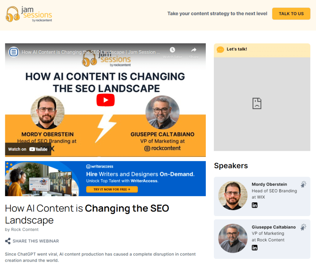 Eu conduzo as Jam Sessions, uma série de entrevistas em vídeo ao vivo organizadas pela Rock Content com a participação de profissionais especialistas, pioneiros e inovadores do mundo do marketing. Para citar alguns exemplos, Joe Pulizzi, Pam Didner e Rand Fishkin já foram destaque em nosso palco.